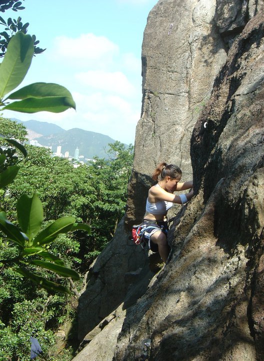 I climbed three routes on that crag. First off, I am not sure what exact mountain I climbed but it was about a 20 minute hike from the top of old peak road. I assume it was or very close to the Victoria peak mountain because the view from the top looked exactly like looking down from the peak- except- I was hanging by a thread. Rope to be concise.